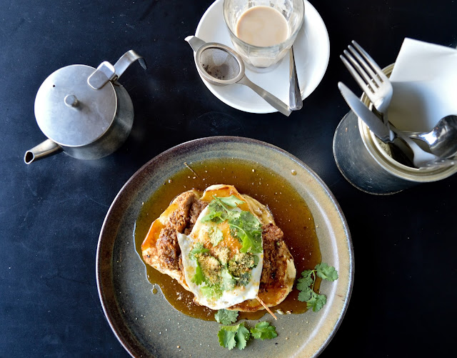 I've always been intrigued by seeing Americans having savoury meats like bacon and fried chicken with sweet pancakes and maple syrup, I'm used to pancakes as a sweet dish so I wasn't sure of how the flavour combination would taste. Now I finally understand what all the fuss is about! I was very impressed with the fried chicken, it was tender, juicy and despite being drizzled with maple syrup it wasn't soggy at all. The savoury and sweet combination was delicious, the chilli added an extra kick, while the egg and pancake neutralised the flavours. The only negative thing I have to say about this dish is that the pancake was a little thick, which made it carby and difficult to finish, it would be perfect if it was half the thickness. I give this dish a rating of 9/10.